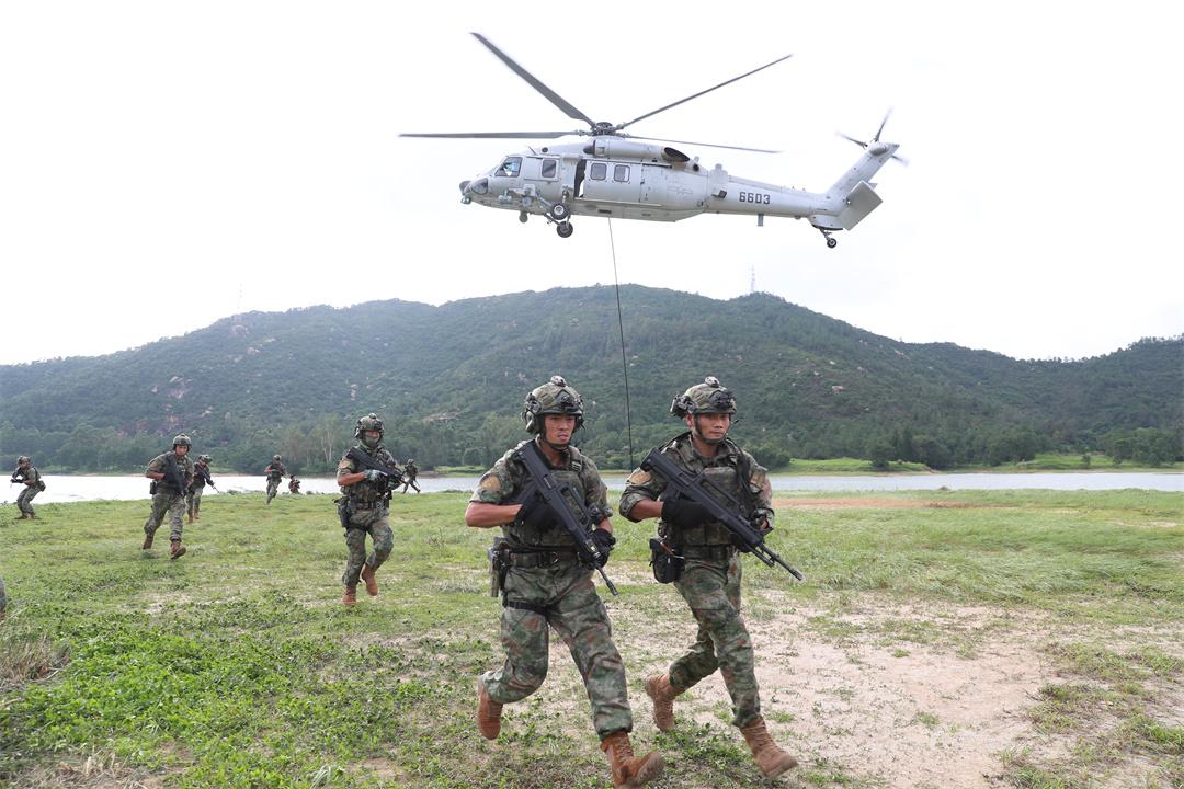圖為駐澳門部隊組織機降訓練。