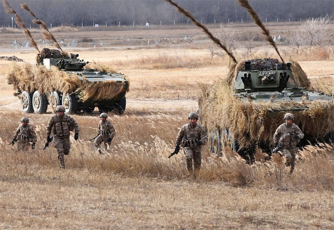 圖為“百戰(zhàn)百勝營(yíng)”官兵下車勇猛沖擊。