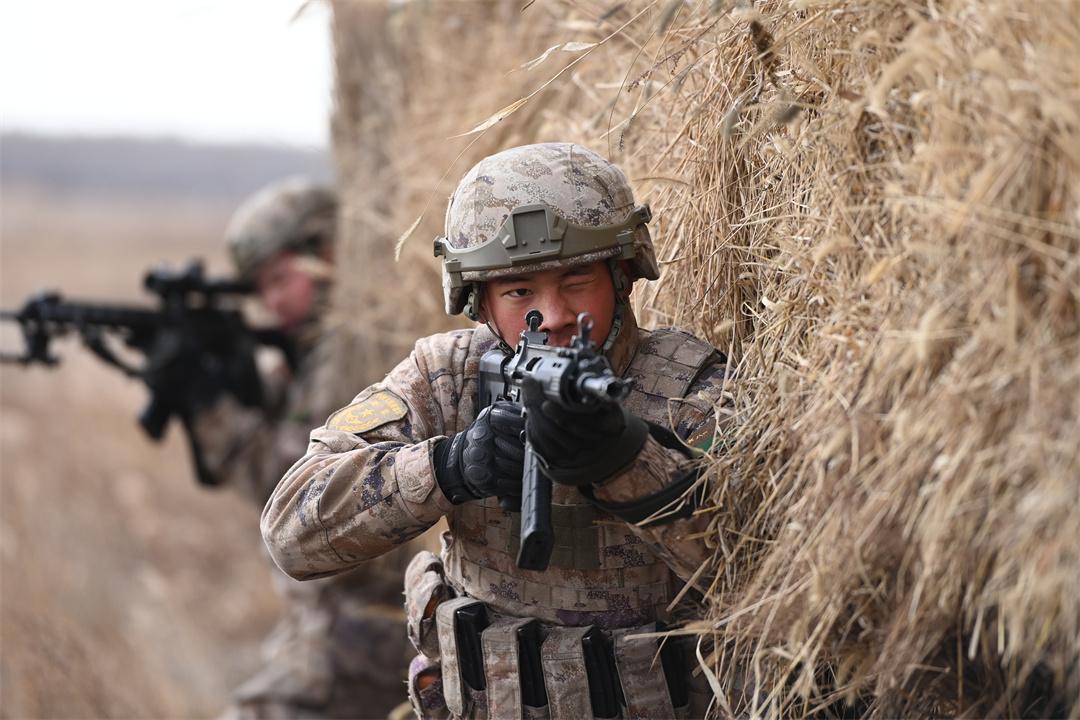 圖為“百戰(zhàn)百勝營(yíng)”戰(zhàn)士交替掩護(hù)前進(jìn)。