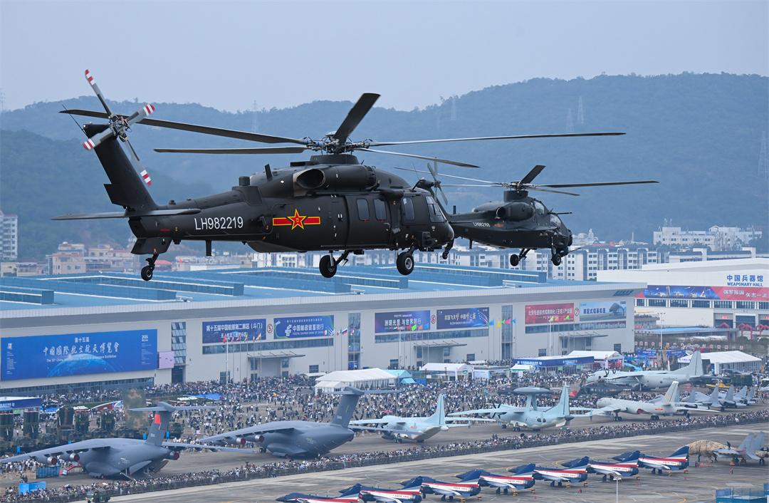 藍天之下,戰(zhàn)機轟鳴。第十五屆中國航展現(xiàn)場,陸軍數(shù)架多型戰(zhàn)機貫空而來,呈戰(zhàn)斗隊形通場。