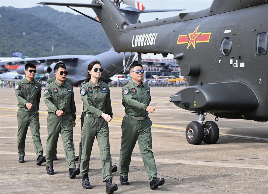 圖為第十五屆中國航展上,女飛行員徐楓燦(右二)與戰(zhàn)友一起走向機位。張永進 攝