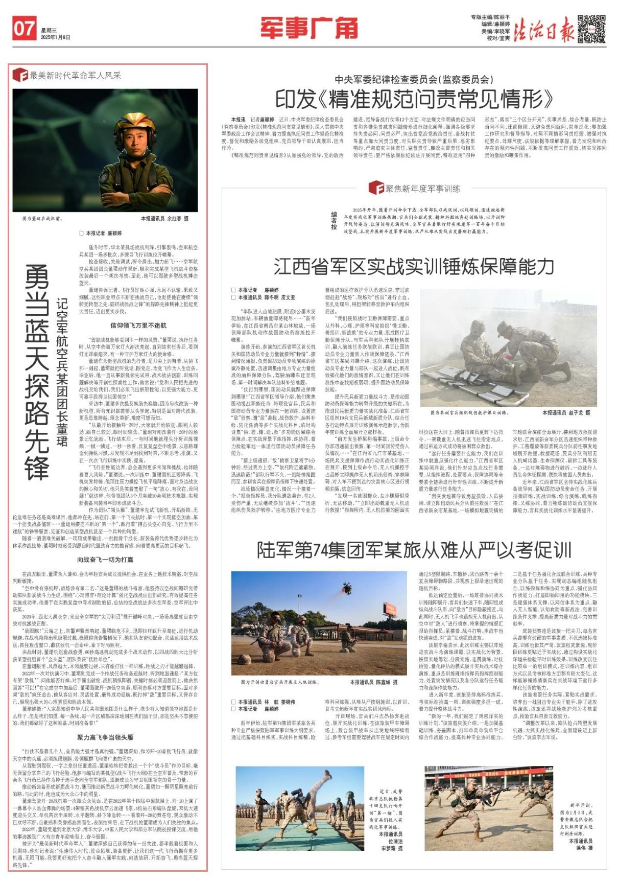 被評(píng)為“最美新時(shí)代革命軍人”,董珺深感自己獲得的每一份關(guān)注,都承載著祖國(guó)和人民期待。他對(duì)記者說(shuō):“生逢偉大時(shí)代,使命拓展、裝備更新,讓我們這一代飛行員擁有更多機(jī)遇、無(wú)限可能。我要更好地把個(gè)人奮斗融入強(qiáng)軍實(shí)踐,向戰(zhàn)鉆研、開(kāi)拓奮飛,勇當(dāng)藍(lán)天探路先鋒?!?/p>