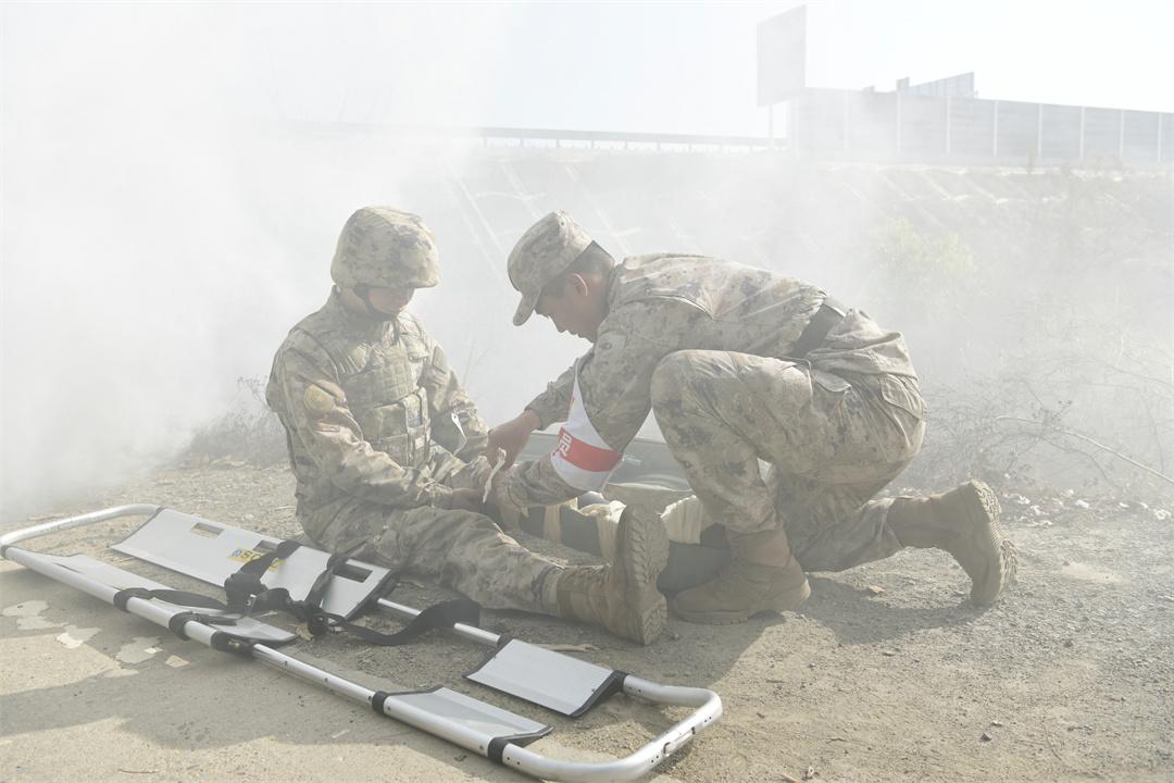 圖為參訓(xùn)官兵組織戰(zhàn)傷救護(hù)課目訓(xùn)練。