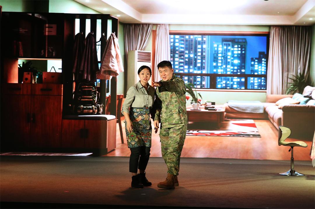 一棵樹、一個家、一輩子、一生情,舞臺上演出了軍嫂對丈夫工作無怨無悔的支持。演員們飽含深情的臺詞,讓在場觀眾流下感動和幸福的淚水。