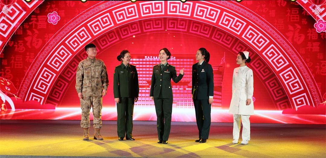 情景劇由第四醫(yī)學(xué)中心官兵員工排練演出,5個故事分別從不同側(cè)面反映官兵員工在總醫(yī)院和中心黨委領(lǐng)導(dǎo)下,扎根崗位、拼搏進取的奮斗經(jīng)過和取得的成果。情景劇一開場,歡欣鼓舞的5位官兵代表用寫春聯(lián)的形式回顧一年走過的奮斗足跡。