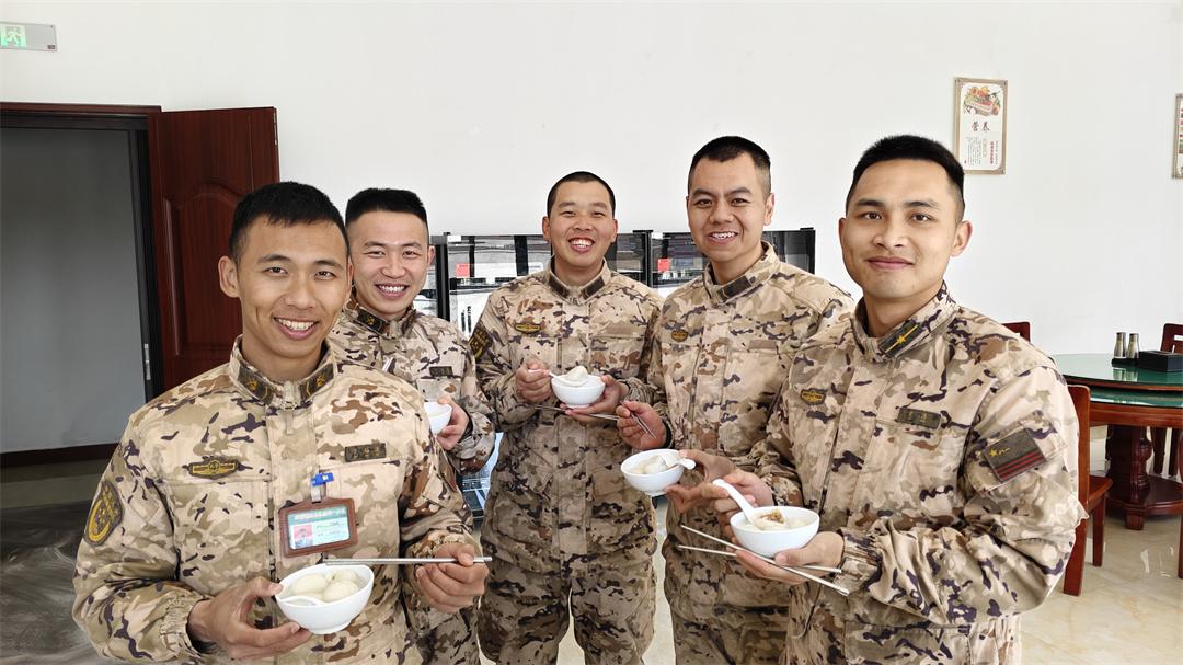 走進(jìn)食堂,一場(chǎng)熱鬧非凡的包湯圓活動(dòng)正在上演。官兵們挽起袖子,揉面團(tuán)、調(diào)餡料,手法略顯生疏,但熱情絲毫不減。有的湯圓包得圓潤(rùn)飽滿,有的則略顯“個(gè)性”,卻都包裹著滿滿的溫暖。食堂里歡聲笑語(yǔ)不斷,熱氣騰騰的湯圓端上桌,咬下一口,香甜的餡料在舌尖散開,幸福的滋味溢滿心間。這一口湯圓,是家的味道,是團(tuán)圓的象征,讓遠(yuǎn)離家鄉(xiāng)的戰(zhàn)士們感受到家的溫暖。