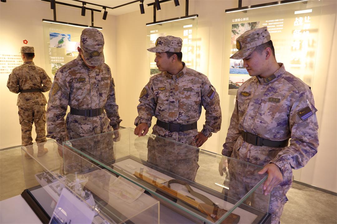 圖為官兵參觀大榭島雙擁展覽館。