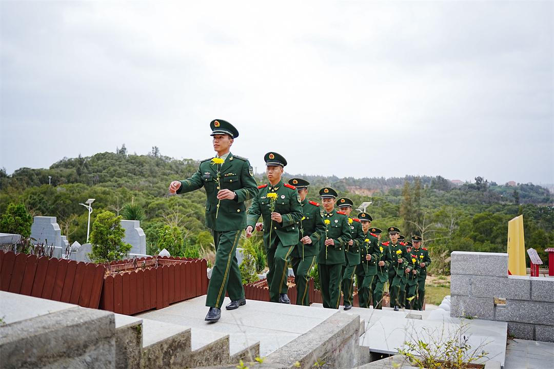 圖為官兵向烈士紀(jì)念碑敬獻(xiàn)鮮花。李發(fā)興 攝