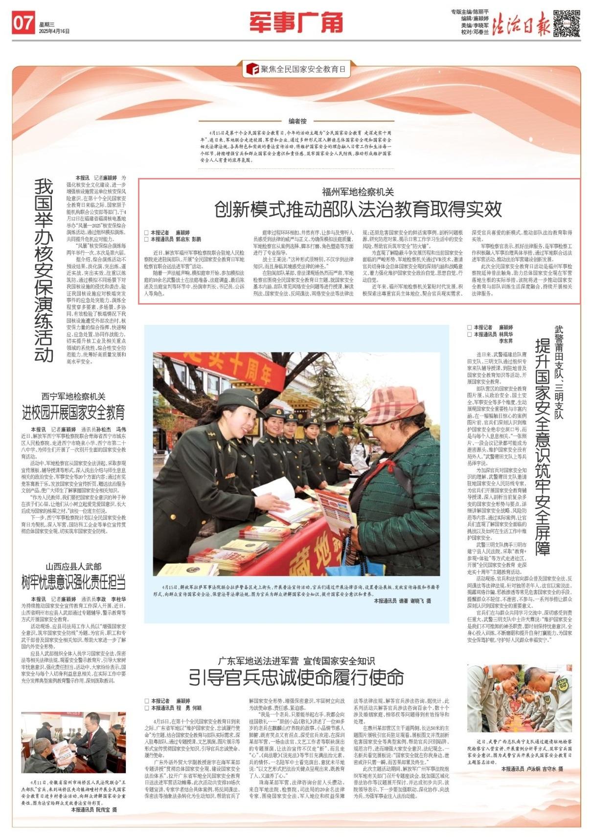 此次全民國(guó)家安全教育日活動(dòng)是福州軍事檢察院延伸普法觸角、助力總體國(guó)家安全觀在軍營(yíng)落地生根的實(shí)際舉措。該院將進(jìn)一步推動(dòng)國(guó)家安全教育與部隊(duì)訓(xùn)練生活深度融合,持續(xù)開展相關(guān)法律服務(wù)。