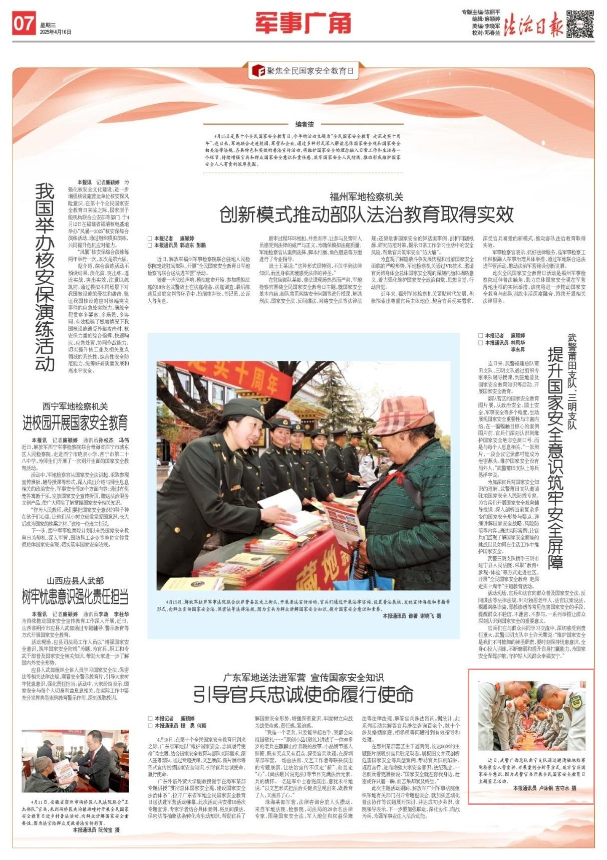近日,武警廣西總隊(duì)南寧支隊(duì)通過(guò)邀請(qǐng)駐地檢察院檢察官入營(yíng)宣講、開(kāi)展案例分析等方式,筑牢官兵國(guó)家安全意識(shí)。