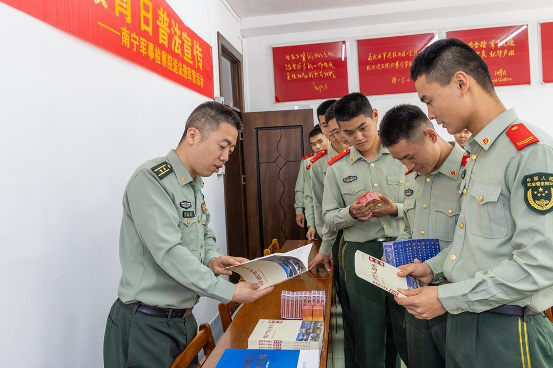 圖為向武警官兵發(fā)放法律學(xué)習(xí)書(shū)籍。