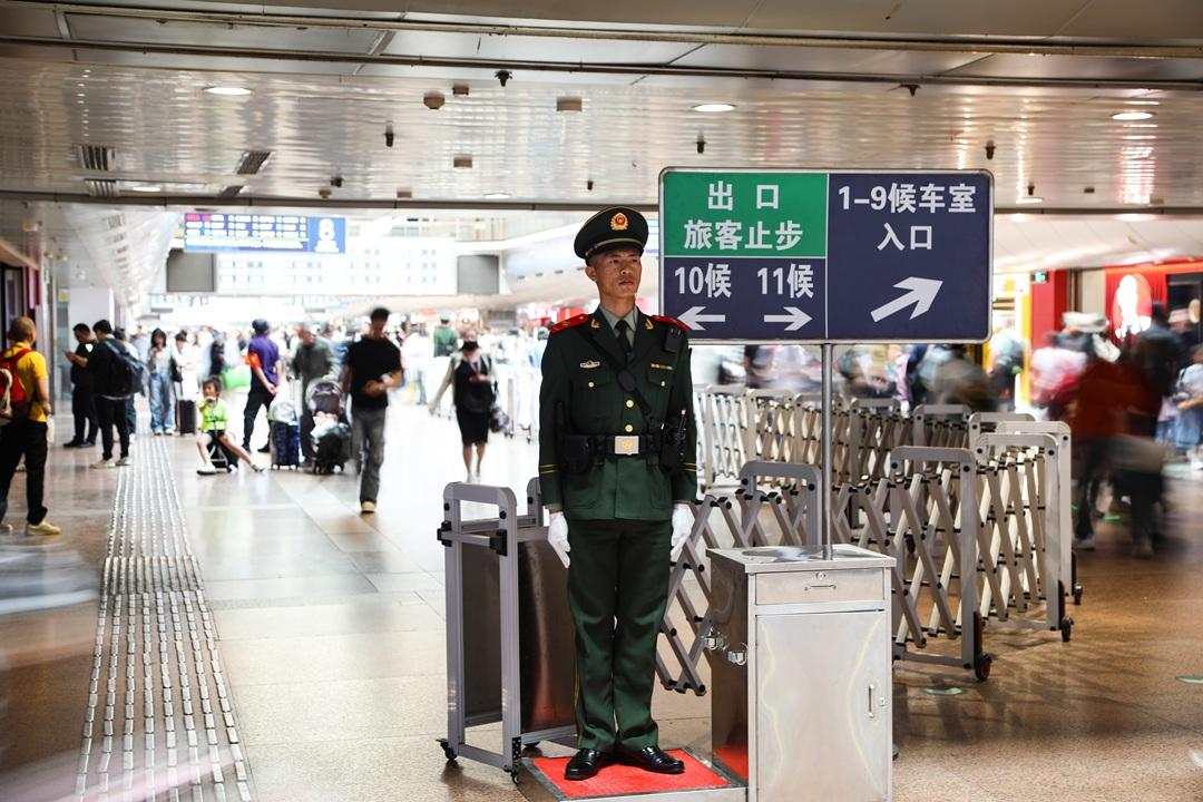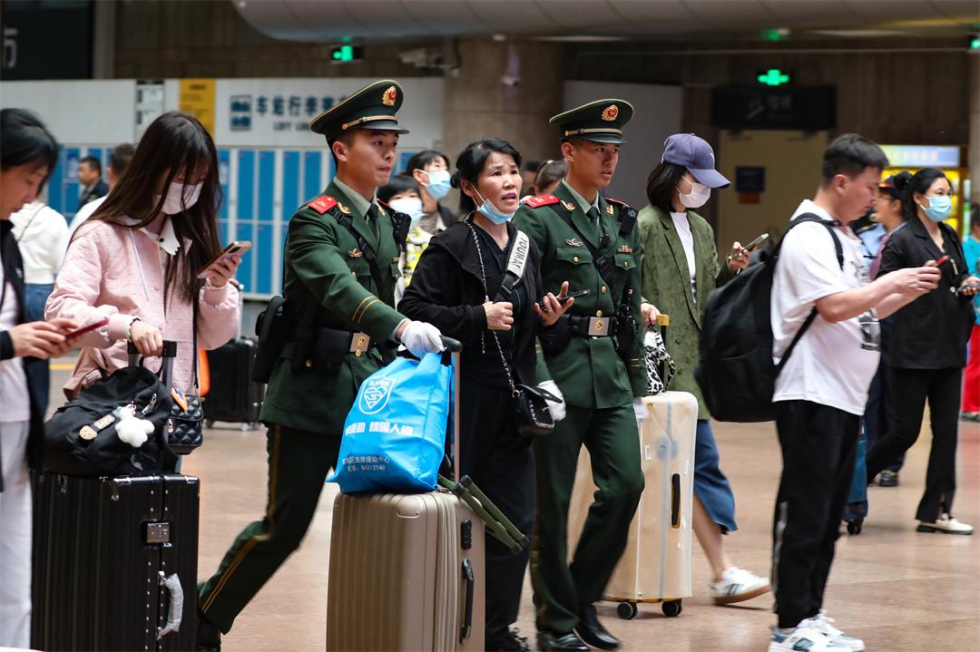 “五一期間,我們優(yōu)化勤務(wù)部署、科學(xué)籌措兵力,分別在安檢口、檢票口、候車區(qū)等重點(diǎn)部位布設(shè)多個(gè)哨位,在維護(hù)秩序的同時(shí)提供便民服務(wù),確保旅客出行安全順暢?!痹撝ш?duì)某中隊(duì)中隊(duì)長(zhǎng)曹懷源說(shuō)。