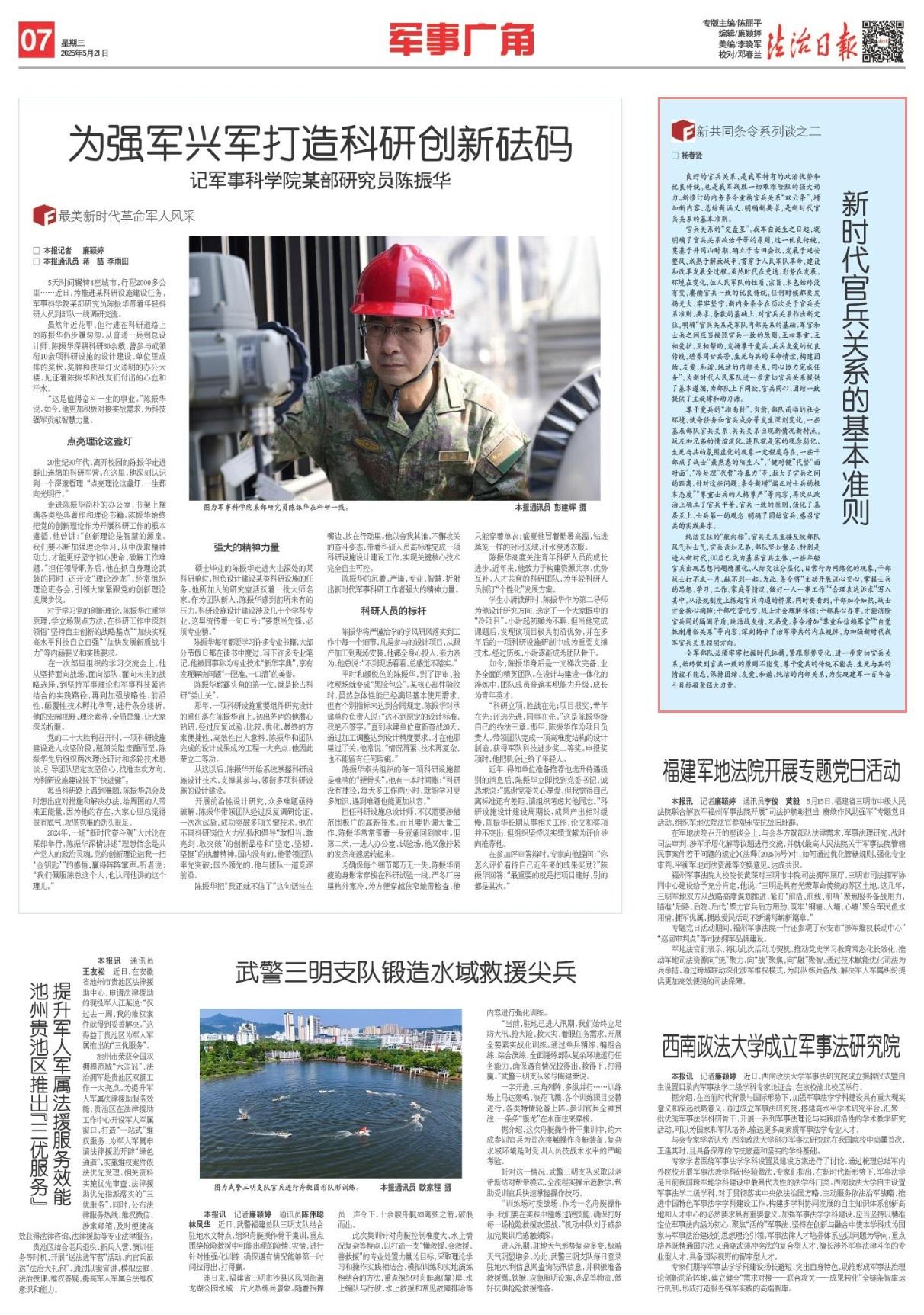 良好的官兵關(guān)系,是我軍特有的政治優(yōu)勢(shì)和優(yōu)良傳統(tǒng),也是我軍戰(zhàn)勝一切艱難險(xiǎn)阻的強(qiáng)大動(dòng)力。新修訂的內(nèi)務(wù)條令重構(gòu)官兵關(guān)系“雙六條”,增加新內(nèi)容、總結(jié)新涵義、明確新要求,是新時(shí)代官兵關(guān)系的基本準(zhǔn)則。