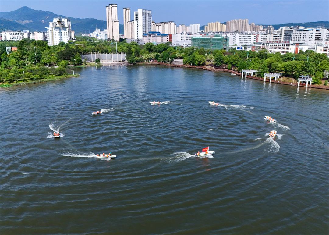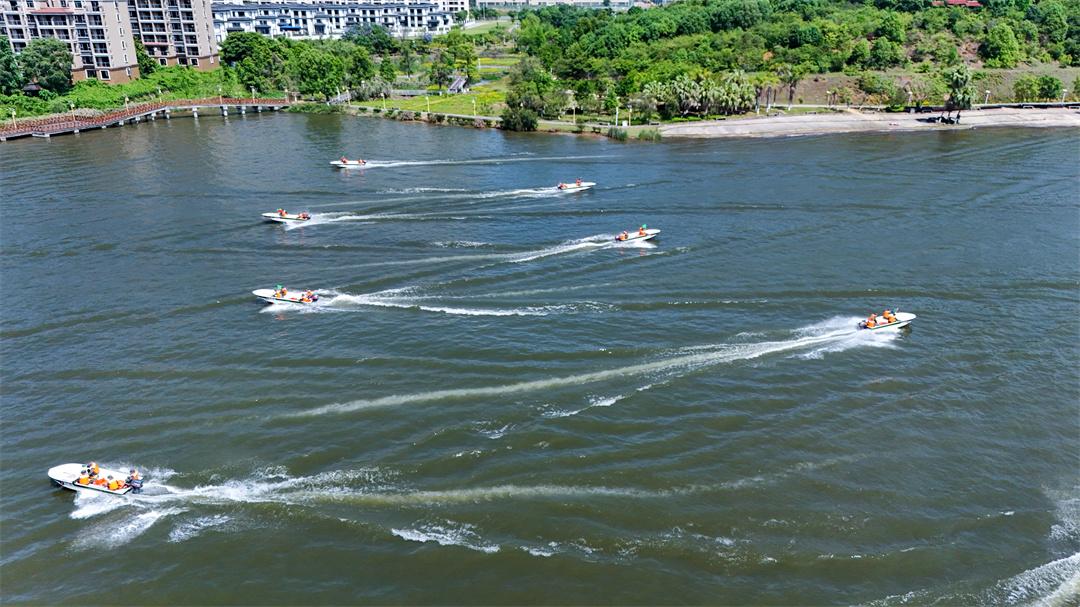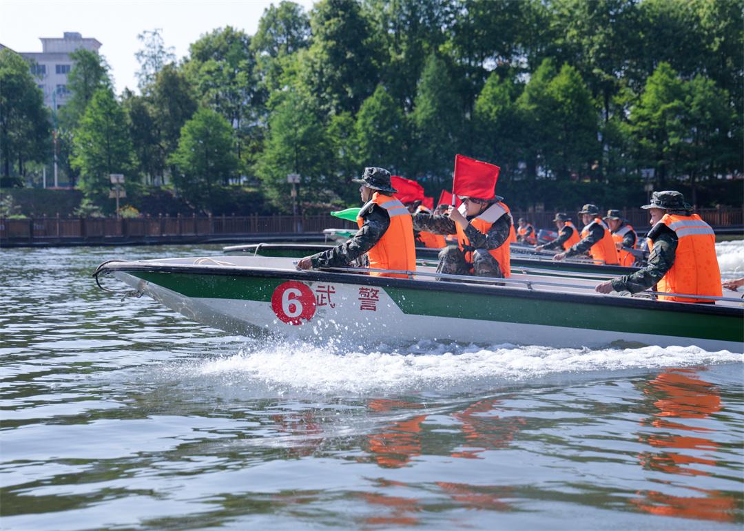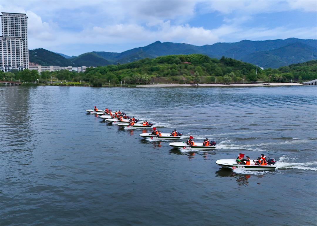 連日來(lái),福建省三明市沙縣區(qū)鳳崗街道龍湖公園水域一片火熱練兵景象。隨著指揮員一聲令下,十余艘舟艇如離弦之箭,破浪而出。