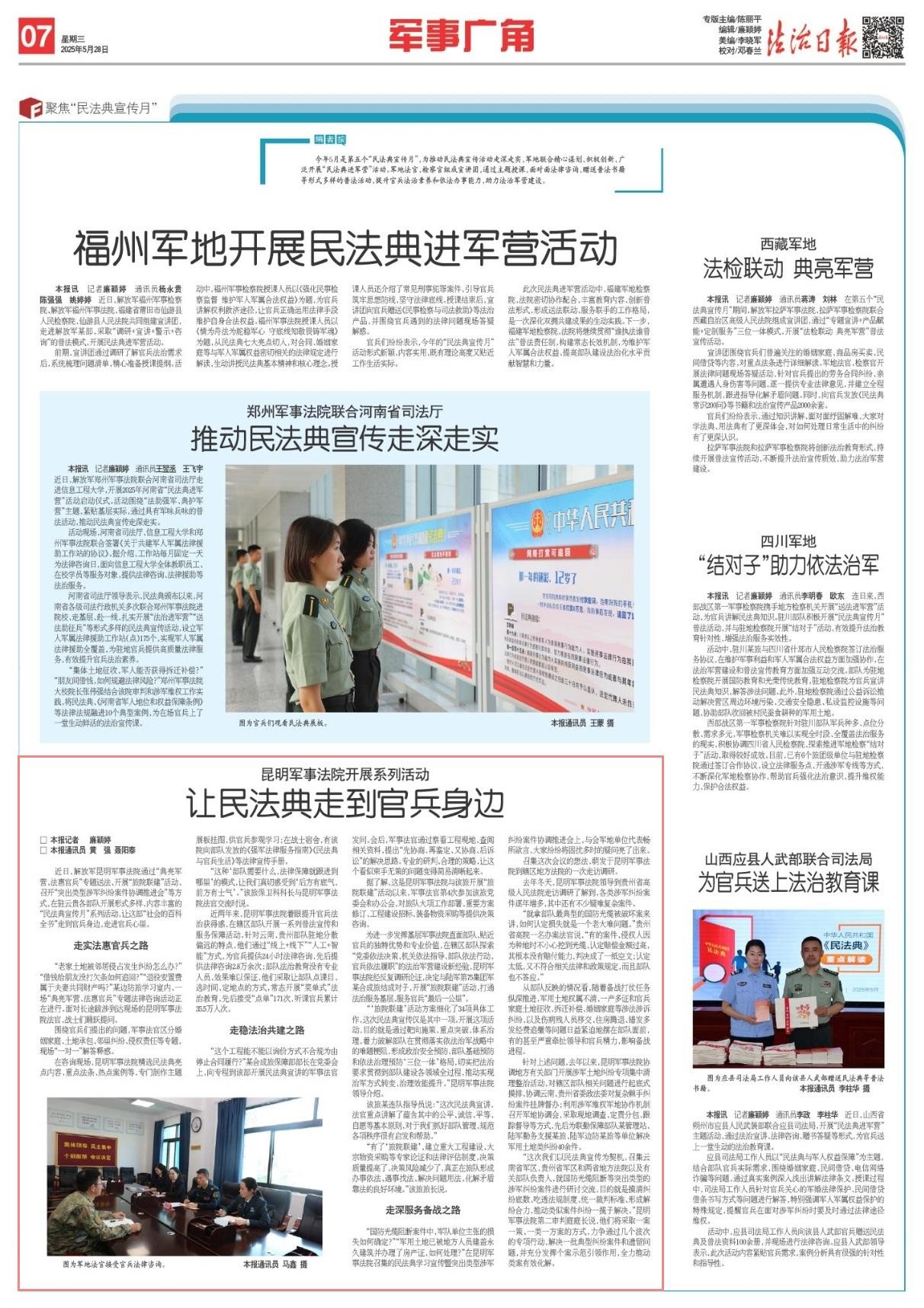 “‘旅院聯(lián)建’活動(dòng)方案細(xì)化了34項(xiàng)具體工作,這次民法典宣傳僅是其中一項(xiàng)。開展這項(xiàng)活動(dòng),目的就是通過(guò)靶向施策、重點(diǎn)突破、體系治理,著力破解部隊(duì)在貫徹落實(shí)依法治軍戰(zhàn)略中的難題梗阻,形成政治安全預(yù)防、部隊(duì)基礎(chǔ)預(yù)防和依法治理預(yù)防‘三位一體’格局,切實(shí)把法治要求貫徹到部隊(duì)建設(shè)各領(lǐng)域全過(guò)程,推動(dòng)實(shí)現(xiàn)治軍方式轉(zhuǎn)變、治理效能提升?!崩ッ鬈娛路ㄔ侯I(lǐng)導(dǎo)介紹。