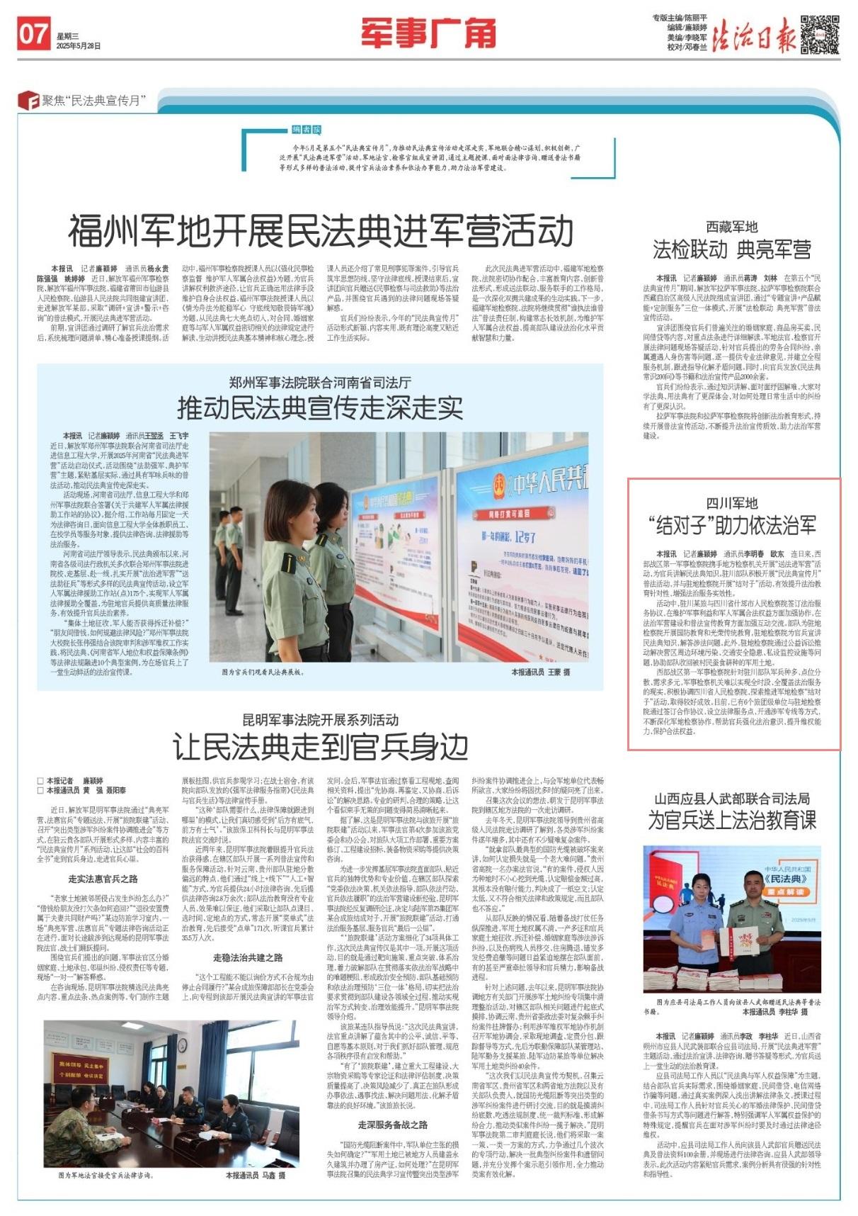 連日來,西部戰(zhàn)區(qū)第一軍事檢察院攜手地方檢察機關(guān)開展“送法進軍營”活動,為官兵講解民法典知識。駐川部隊積極開展“民法典宣傳月”普法活動,并與駐地檢察院開展“結(jié)對子”活動,有效提升法治教育針對性,增強法治服務(wù)實效性。