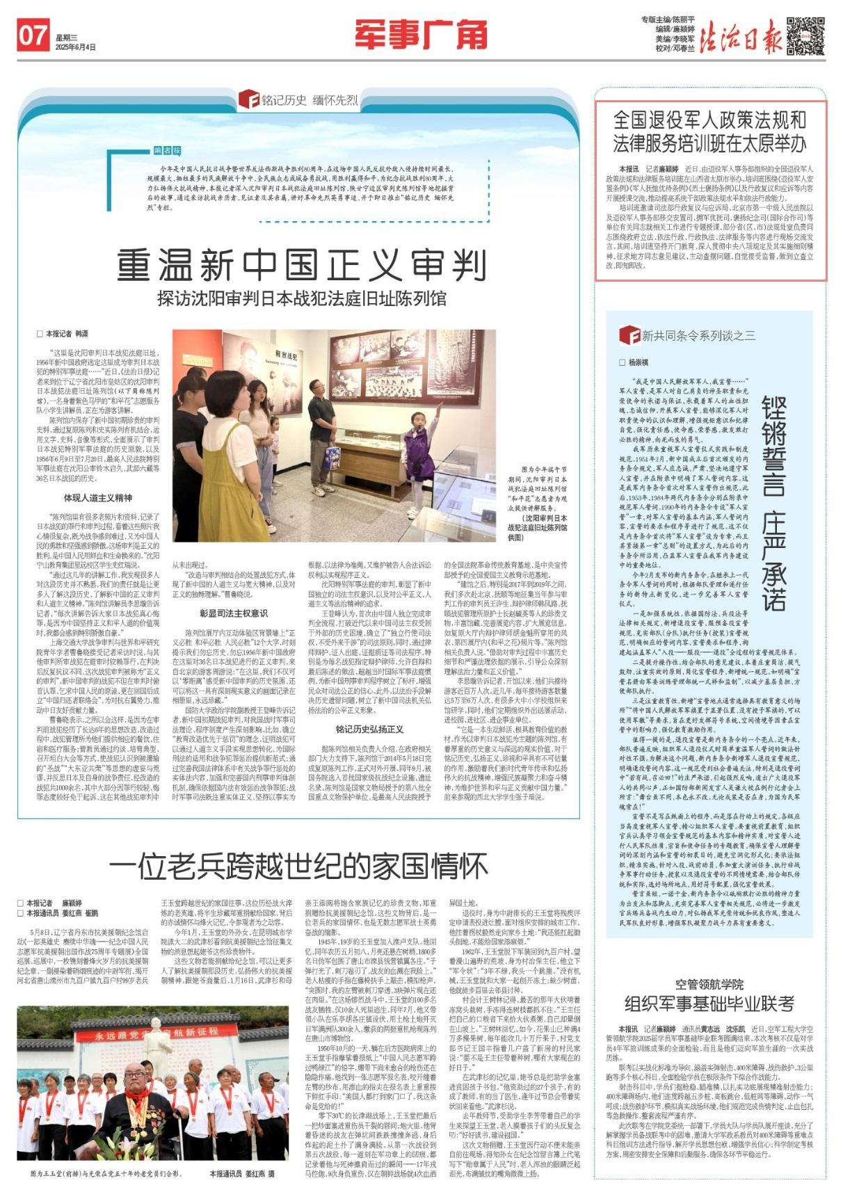 值得一提的是,退役宣誓是新內(nèi)務條令的一個亮點。近年來,部隊普遍反映,組織軍人退役儀式時簡單重溫軍人誓詞的做法針對性不強。為解決這個問題,新內(nèi)務條令新增軍人退役宣誓規(guī)范,明確退役誓詞內(nèi)容。這一規(guī)范受到社會普遍關注,特別是退役誓詞中“若有戰(zhàn),召必回!”的莊嚴承諾,引起強烈反響,道出廣大退役軍人的共同心聲。正如國防部新聞發(fā)言人吳謙大校在例行記者會上所言:“舞臺雖不同,本色永不改。無論戎裝是否在身,為國為民軍魂常在!”