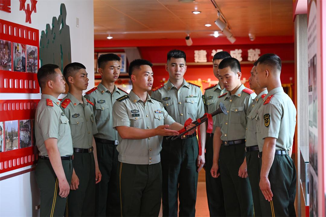 “眼前這把銹跡斑駁的軍號,訴說著歷盡烽煙的歷史。它是官兵沖鋒陷陣的領(lǐng)跑者,亦是中隊日新月異的見證者……”盛夏時節(jié),武警安徽總隊合肥支隊執(zhí)勤一大隊執(zhí)勤一中隊政治指導(dǎo)員潘翔,以“曬曬中隊傳家寶”為引,為全隊官兵上了一堂生動的教育課。