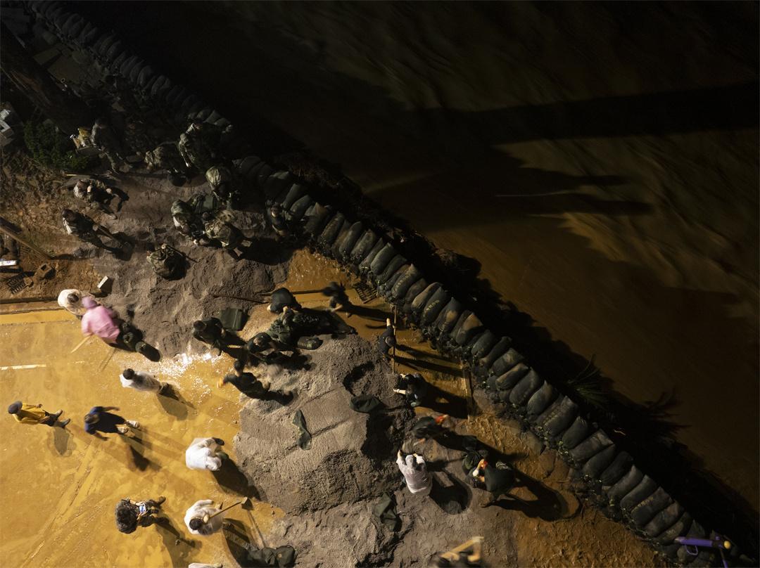 截至22時00分,已累計搬運(yùn)沙袋500余包。目前,武警官兵仍在一線持續(xù)救援。