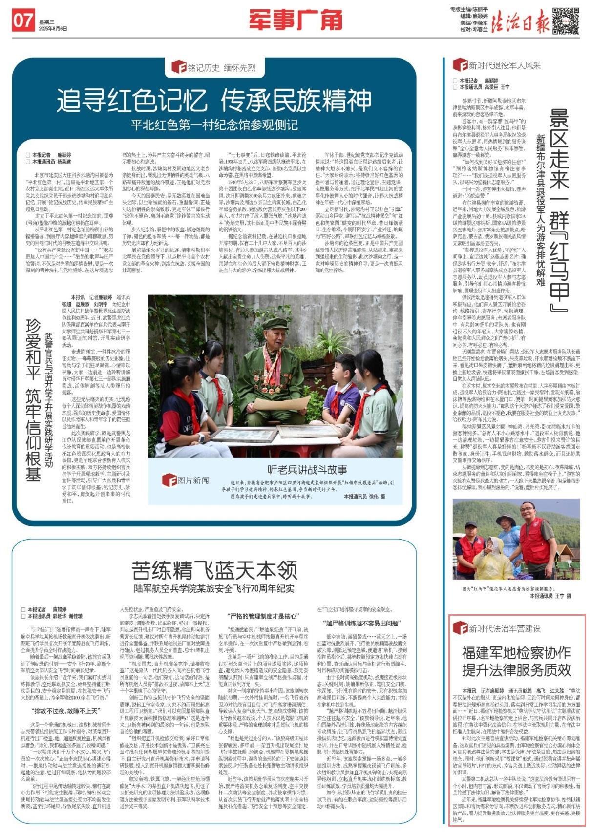 近年來,福建軍地檢察機(jī)關(guān)持續(xù)深化軍地檢察協(xié)作,始終以轄區(qū)部隊(duì)和官兵需求為導(dǎo)向,不斷改進(jìn)和創(chuàng)新服務(wù)方式,精心制作法治產(chǎn)品,著力提升服務(wù)質(zhì)效,讓法律服務(wù)更有溫度、更有實(shí)感、更接地氣。