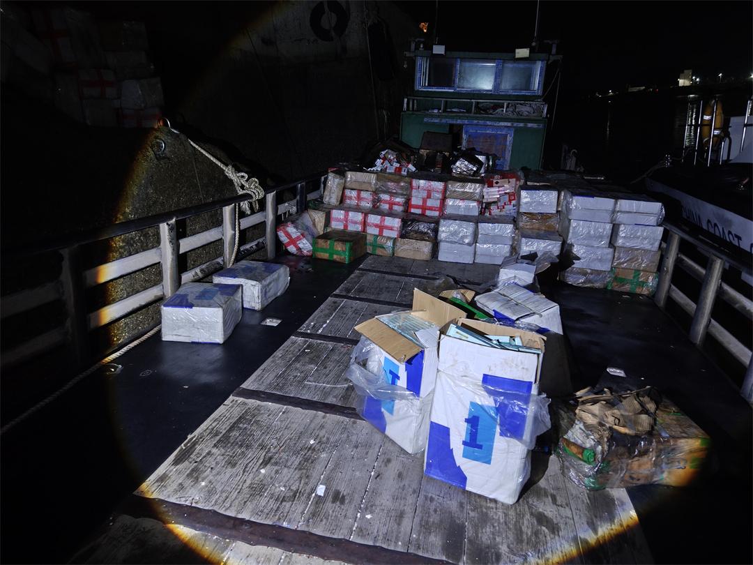 當日凌晨1時50分許,寧德海警局霞浦第二工作站執(zhí)法艇在牙城灣附近海域巡邏時,一艘靠泊碼頭的無船名號可疑泡沫船進入執(zhí)法員視野,且有多名人員正在緊急卸貨。海警執(zhí)法艇隨即向該船靠近,最終將5名犯罪嫌疑人抓獲。