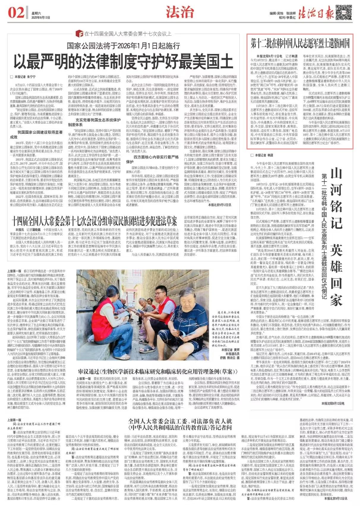 今年是中國人民志愿軍抗美援朝出國作戰(zhàn)75周年,我國已迎回12批1011位在韓志愿軍烈士遺骸。根據(jù)安排,9月13日10時,第十二批在韓中國人民志愿軍烈士遺骸安葬儀式將在沈陽抗美援朝烈士陵園志愿軍烈士紀念廣場舉行。