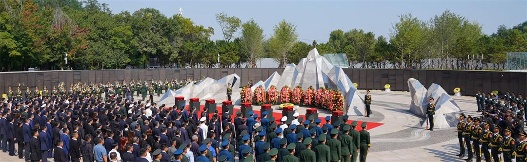 9月13日10時(shí),安葬儀式開始。陵園下沉式紀(jì)念廣場環(huán)形烈士英名墻下,擺滿黃白相間的菊花,參加儀式的人們肅穆站立。軍樂隊(duì)奏響婉轉(zhuǎn)低回的《思念曲》,在解放軍儀仗司禮大隊(duì)官兵持槍護(hù)衛(wèi)下,禮兵們邁著整齊的步伐,護(hù)送志愿軍烈士遺骸棺槨緩步進(jìn)入紀(jì)念廣場,全場奏唱中華人民共和國國歌。