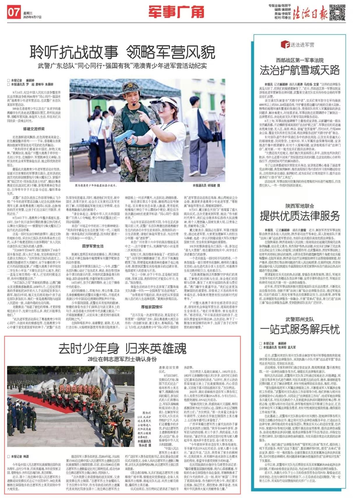 在沈陽就讀的臺(tái)胞學(xué)生馬靖雯告訴記者:“瞻仰著覆蓋國旗的棺槨,我內(nèi)心深感震撼。年輕的生命在異國他鄉(xiāng)浴血奮戰(zhàn),用犧牲換來了我們今天的和平。這一刻,我對(duì)‘家國’二字有了更深的體悟。作為新時(shí)代青少年,我們要不忘根脈、銘記歷史,勇?lián)姑y手奮進(jìn),為實(shí)現(xiàn)中華民族偉大復(fù)興貢獻(xiàn)青春力量。”