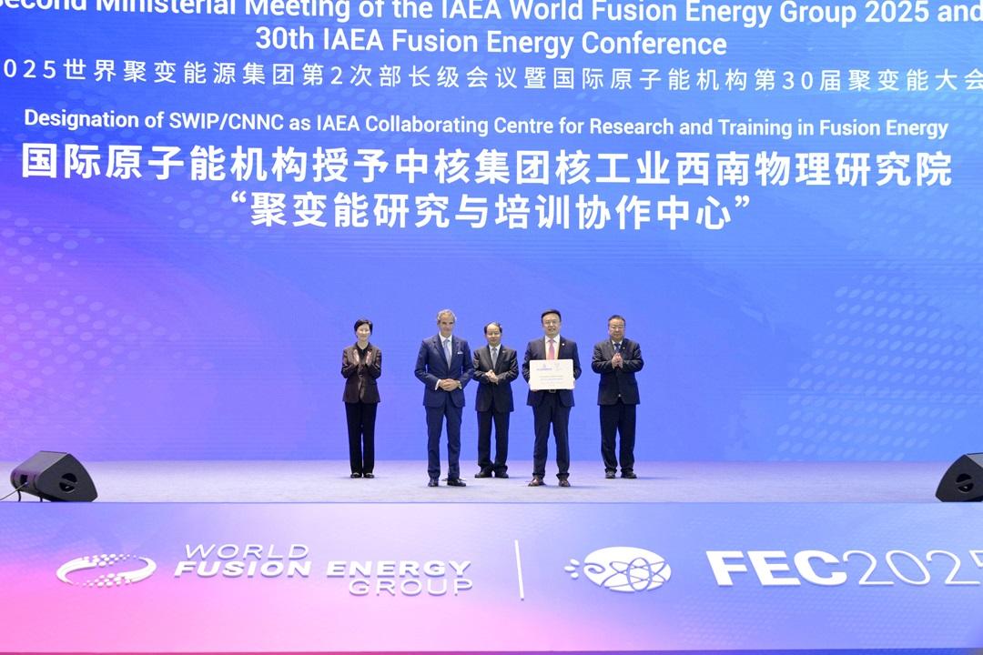 會(huì)上,國(guó)際原子能機(jī)構(gòu)指定中核集團(tuán)核工業(yè)西南物理研究院為其首個(gè)“聚變能研究與培訓(xùn)協(xié)作中心”。