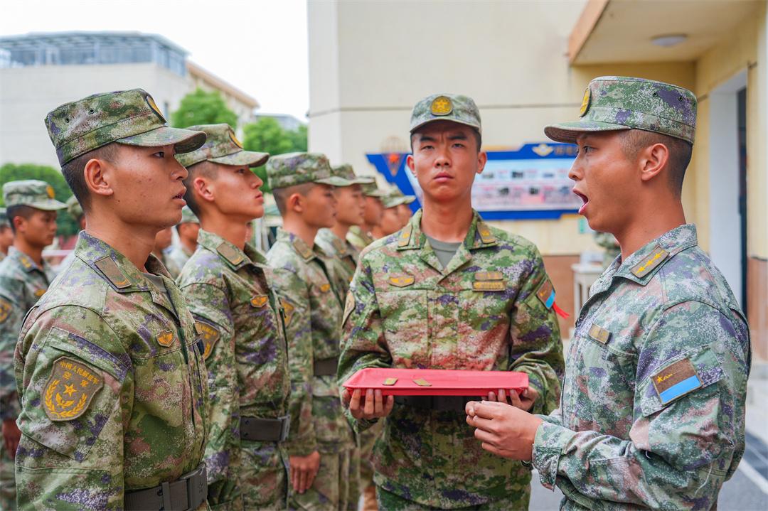 圖為舉行入連儀式,指導(dǎo)員成傳港為新同志們授予榮譽(yù)編號,注入英雄血脈。盛海倫 攝