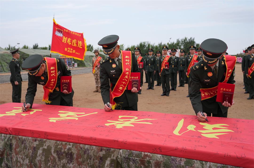 圖為陸軍第82集團(tuán)軍某旅“劉老莊連”舉行“新時代劉老莊八十二勇士”頒授儀式,這是官兵在勇士旗上簽名。張永進(jìn) 攝