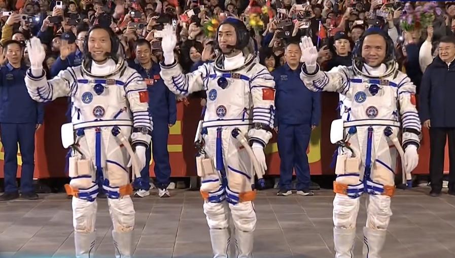 20時(shí)49分,張陸、武飛、張洪章3名航天員領(lǐng)命出征。空間站應(yīng)用與發(fā)展階段飛行任務(wù)總指揮部有關(guān)成員以及航天科技人員、各族群眾代表在現(xiàn)場(chǎng)為航天員乘組壯行。