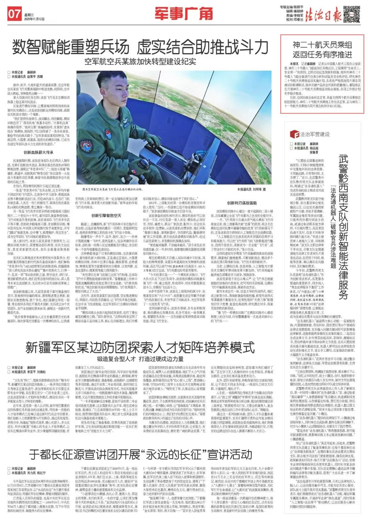 記者從中國載人航天工程辦公室獲悉,神舟二十號載人飛船返回任務(wù)推遲后,工程秉持“生命至上、安全第一”的原則,立即啟動應(yīng)急預(yù)案和措施,組織對神舟二十號載人飛船全面進行仿真分析和試驗及安全性評估,研究神舟二十號航天員乘組返回實施計劃,各系統(tǒng)嚴格按流程開展各項測試和聯(lián)調(diào)聯(lián)試,組織關(guān)鍵產(chǎn)品狀態(tài)判讀和質(zhì)量確認,著陸場正在開展神舟二十號航天員乘組返回綜合演練。各項工作按計劃有序穩(wěn)步推進。
