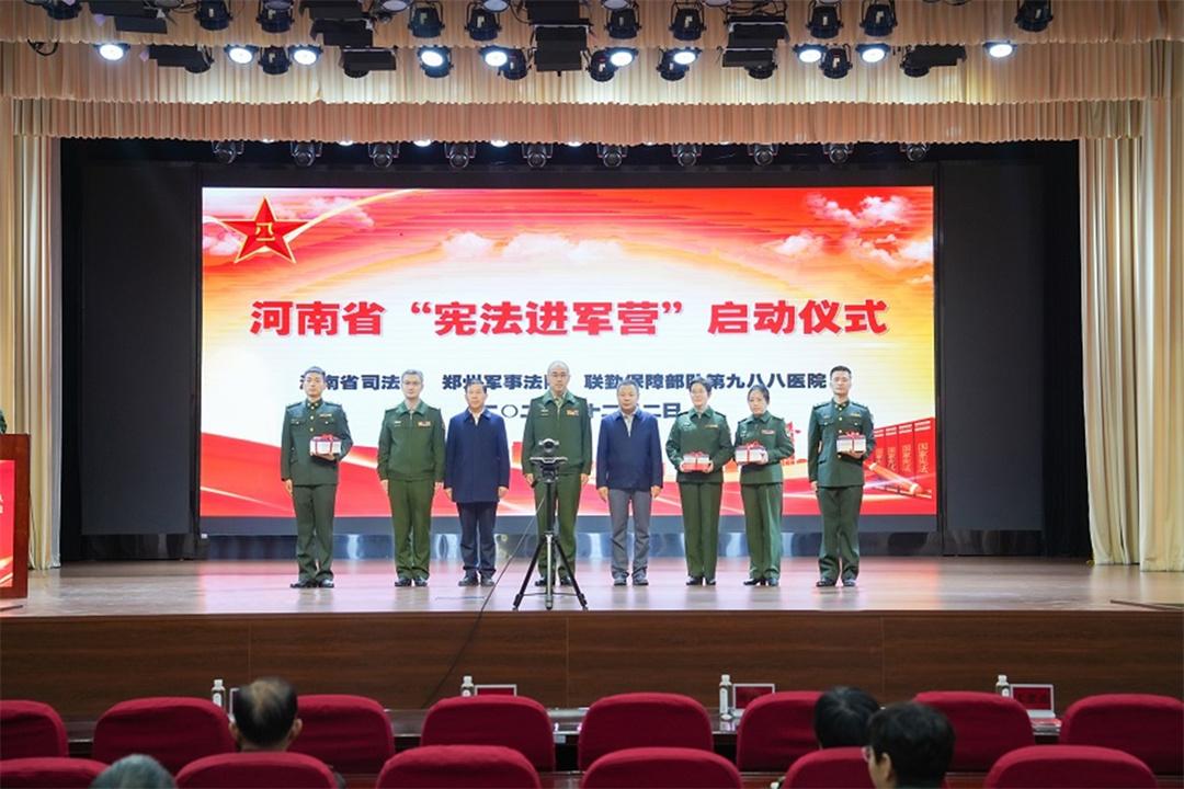 12月2日,鄭州軍事法院聯(lián)合河南省司法廳在聯(lián)勤保障部隊(duì)第九八八醫(yī)院,舉行了一場別開生面的“憲法進(jìn)軍營”啟動(dòng)儀式。儀式上,河南省司法廳領(lǐng)導(dǎo)表示,“八五”普法以來,河南省將“送法進(jìn)軍營”作為做好雙擁工作、推動(dòng)軍民融合發(fā)展的重要抓手,連續(xù)多年與鄭州軍事法院開展法治宣傳教育進(jìn)軍營活動(dòng),厚植軍隊(duì)法治文化,助推法治軍營建設(shè)。