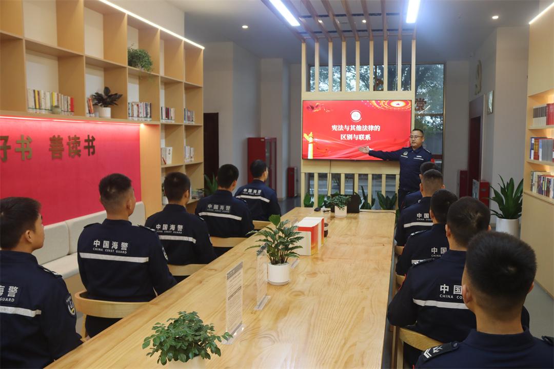 “設(shè)立國(guó)家憲法日,既是對(duì)憲法權(quán)威的莊嚴(yán)致敬,更是全民普法、凝聚法治共識(shí)的生動(dòng)實(shí)踐。”在中國(guó)海警局直屬第三局徜舟書屋里,執(zhí)法員郭文兵正在給大家介紹設(shè)立“國(guó)家憲法日”的重大意義。