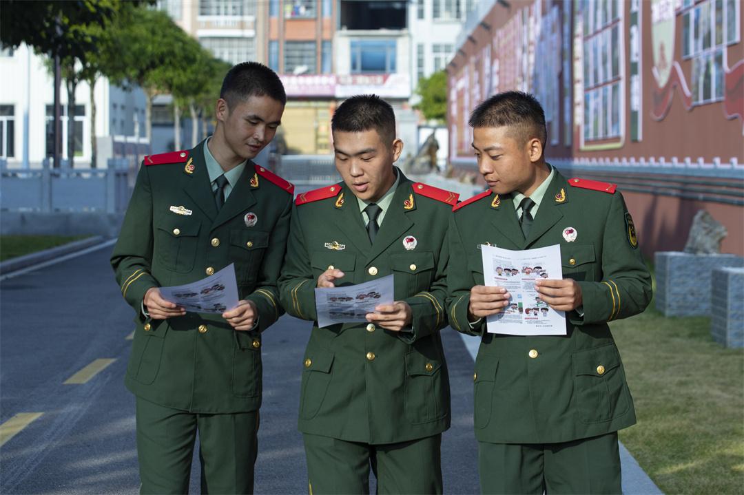 圖為官兵對法律宣傳單內(nèi)容進(jìn)行學(xué)習(xí)。唐明洋 攝