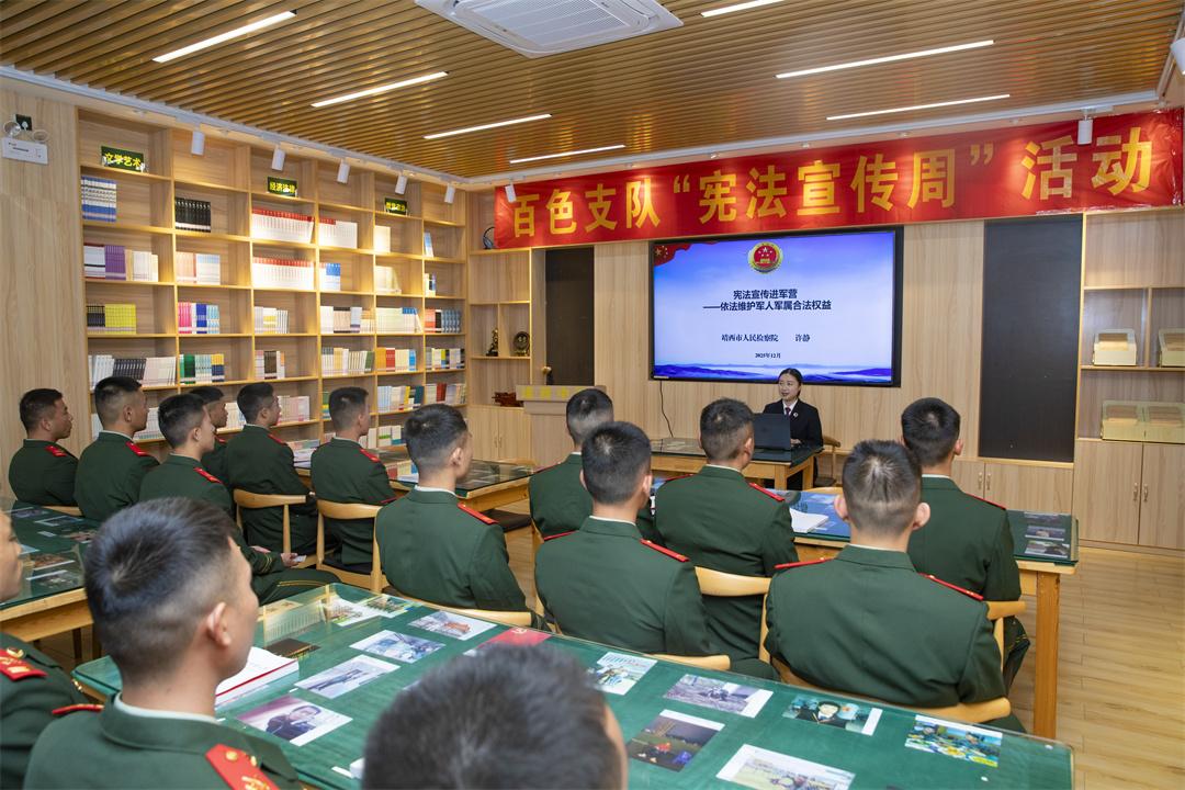 12月2日,武警廣西總隊(duì)百色支隊(duì)邀請駐地檢察院檢察官走進(jìn)軍營,開展“憲法宣傳周”活動,通過專題宣講、案例解析、現(xiàn)場咨詢等形式,為官兵送上精準(zhǔn)司法服務(wù),讓法治精神浸潤軍心。