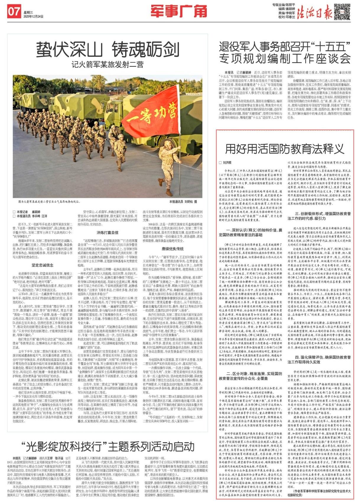 深化研究的金鑰匙。《釋義》凝聚反映了當(dāng)前軍地學(xué)術(shù)界專家對國防教育法最前沿、最深入的研究成果,指明了未來深入開展國防教育工作需要進一步探索研究的方向。應(yīng)鼓勵學(xué)術(shù)界和國防教育工作部門以《釋義》為起點,開展前瞻性、系統(tǒng)性的理論研究、案例分析和對策探討,豐富和發(fā)展國防教育法治理論,構(gòu)建起中國特色的國防教育學(xué)科體系、學(xué)術(shù)體系、話語體系,為普法實踐提供持續(xù)有力的理論支撐。