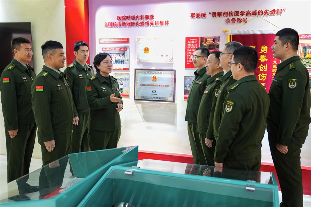 圖為博士團(tuán)隊(duì)在院史館一起回顧執(zhí)行重大軍事任務(wù)中取得榮譽(yù)。張永進(jìn) 攝