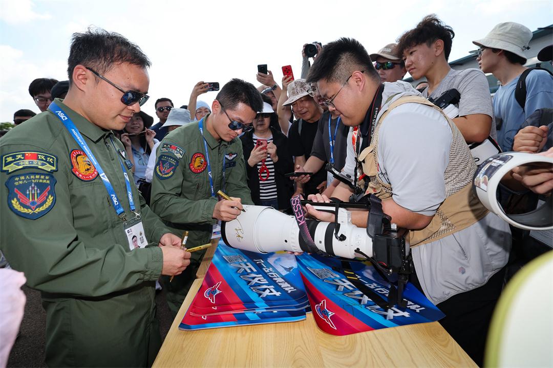 圖為中國空軍八一飛行表演隊(duì)飛行員與觀眾合影。