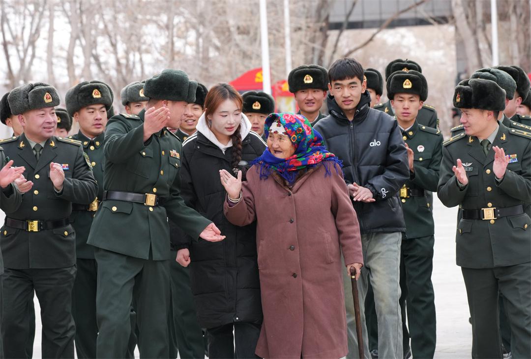 得知連隊(duì)又來(lái)了六名新兵,布茹瑪汗執(zhí)意要去看看。坐在床沿,她握緊年輕戰(zhàn)士的手,講述起往事。舊時(shí)代的陰霾、新中國(guó)的光芒、共產(chǎn)黨的恩情、解放軍的親……說(shuō)到動(dòng)情處,她不時(shí)抬手擦拭眼角。