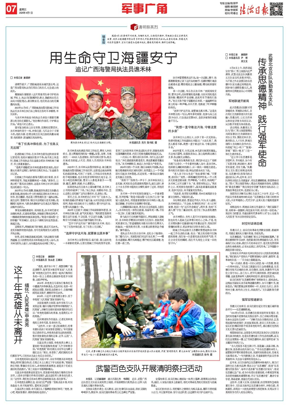 近日,武警安徽總隊(duì)合肥支隊(duì)聯(lián)合合肥市肥東縣長(zhǎng)臨河學(xué)校到茶壺山烈士陵園,開(kāi)展“清明祭英烈 薪火永相傳”主題祭掃活動(dòng)。