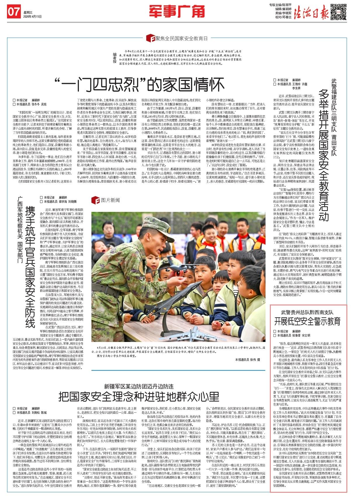 在全民國家安全教育日來臨之際,該支隊以此次事件為契機(jī),組織開展低空飛行器安全警示教育,讓低空安全理念深植每一名官兵心中。