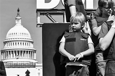 6月6日,學(xué)生們身穿防彈衣在美國(guó)華盛頓國(guó)會(huì)大廈前參加抗議活動(dòng),要求加強(qiáng)槍支管控立法