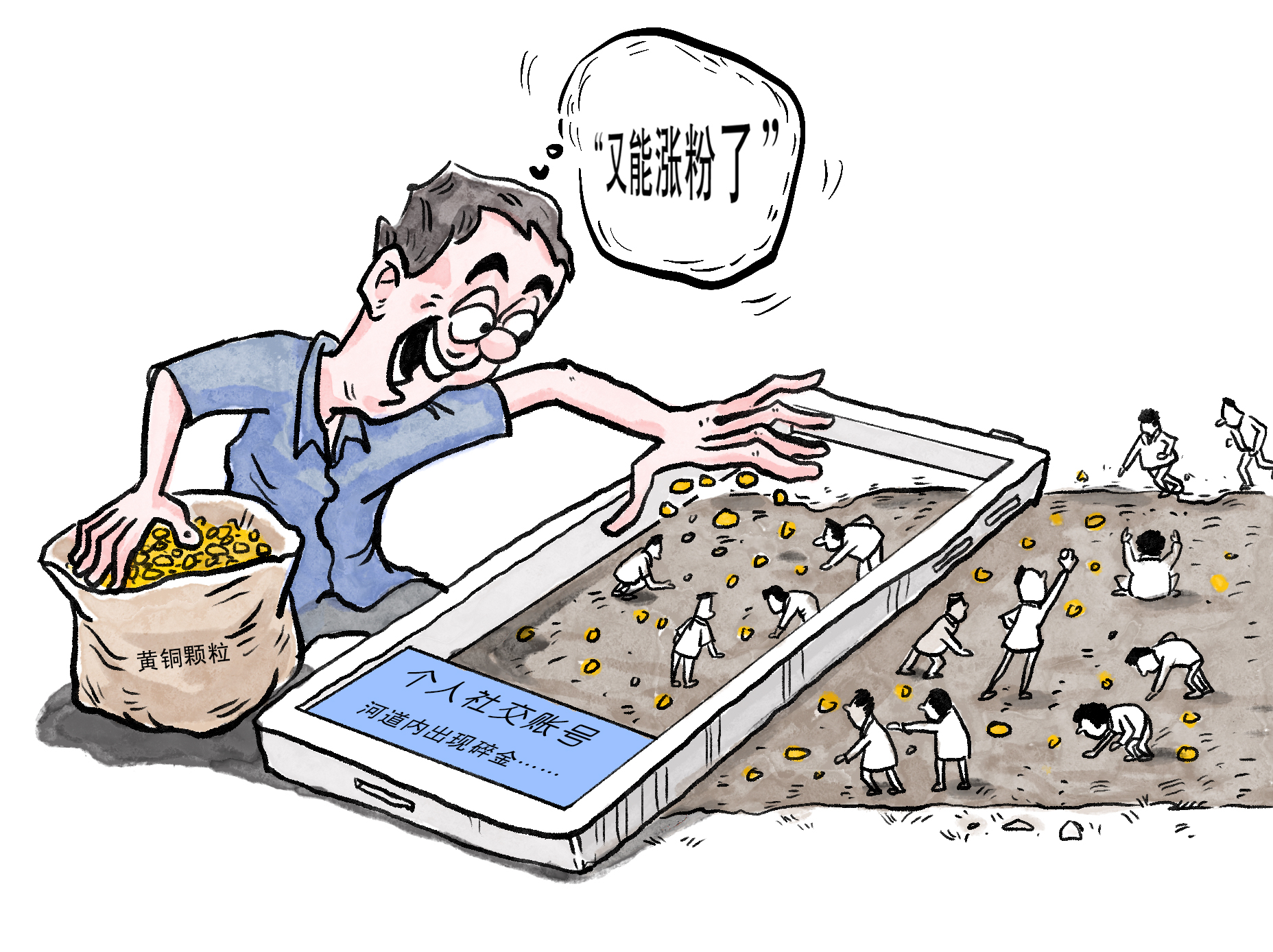 近日,北京市房山區(qū)一男子為提升個(gè)人社交賬號(hào)熱度,購(gòu)買了許多黃銅顆粒并拋撒在一河道內(nèi),隨后宣稱河道內(nèi)出現(xiàn)碎金,吸引附近居民前往淘金?,F(xiàn)場(chǎng)相關(guān)視頻在網(wǎng)上傳播后,引發(fā)社會(huì)關(guān)注。目前當(dāng)?shù)鼐揭岩婪▽?duì)此事進(jìn)行刑事立案?jìng)刹椤?/p>