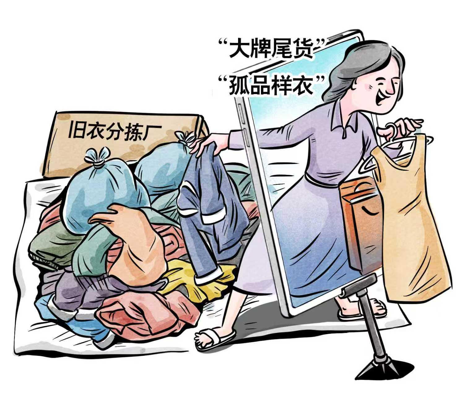 據(jù)媒體近日?qǐng)?bào)道,一些平臺(tái)的電商直播間里所謂的“大牌尾貨”“孤品樣衣”,實(shí)際上來(lái)自舊衣回收。這些二手衣物來(lái)源繁雜,既有舊衣分揀廠的貨源,也有來(lái)自垃圾站的貨品,但直播間商家對(duì)此絕口不提,只以“微臟”“微瑕”等話術(shù)進(jìn)行銷售。