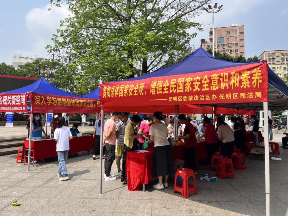 光明區(qū)委政法委聯(lián)合區(qū)司法局、玉塘街道辦等10家單位在轄內(nèi)黨建公園,圍繞“貫徹總體國(guó)家安全觀,增強(qiáng)全民國(guó)家安全意識(shí)和素養(yǎng),夯實(shí)以新安全格局保障新發(fā)展格局的社會(huì)基礎(chǔ)”這一主題,向過(guò)往的群眾就什么是國(guó)家安全、危害國(guó)家安全的行為、公民應(yīng)如何維護(hù)國(guó)家安全等內(nèi)容開(kāi)展宣傳教育。