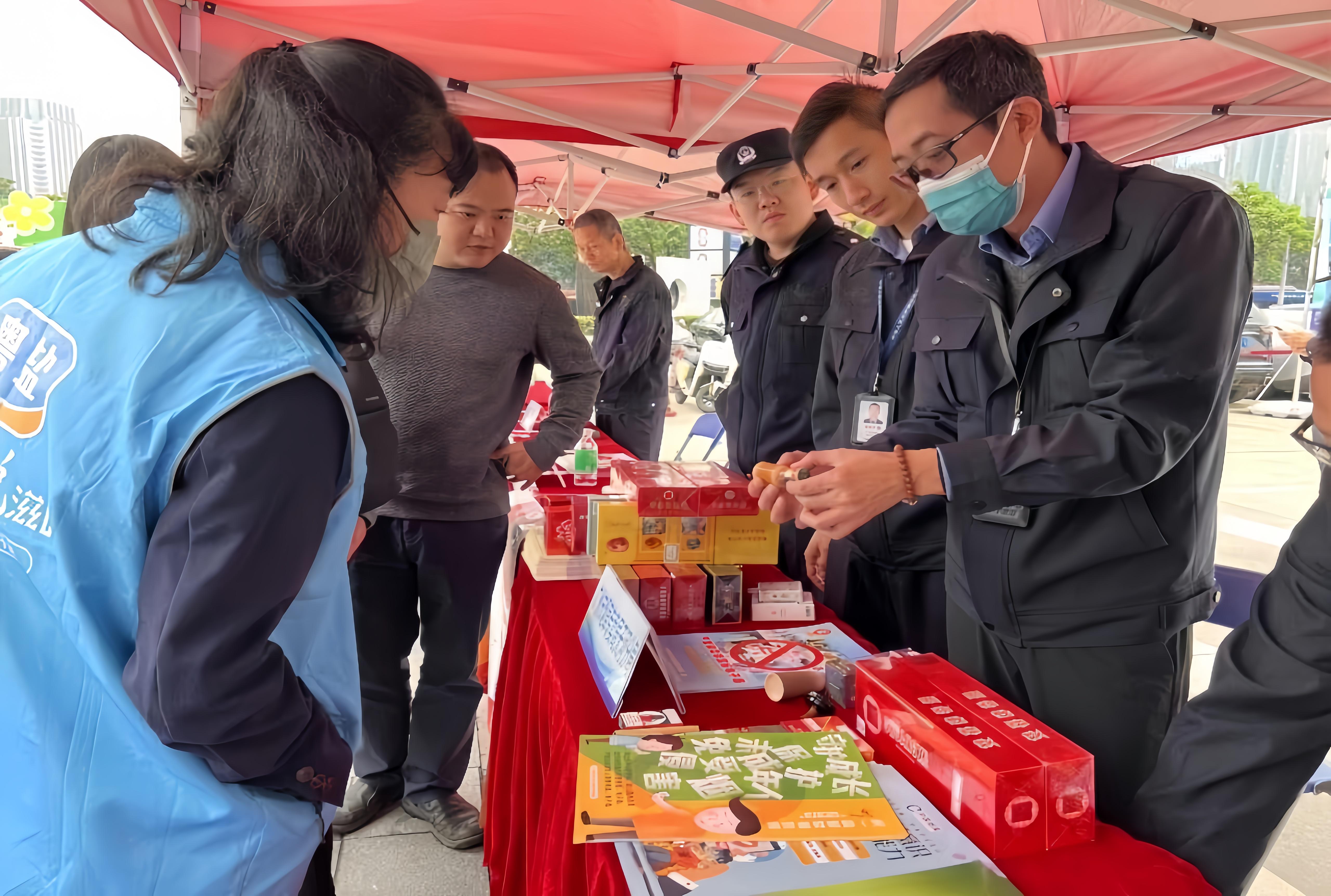圖為廣州市天河區(qū)局工作人員面向社區(qū)群眾開(kāi)展煙草法律法規(guī)宣貫。鄧思思 攝