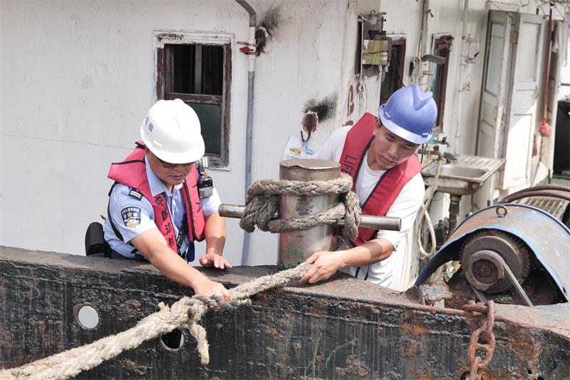在強(qiáng)化船舶安全保障的基礎(chǔ)上,中山邊檢站聚焦口岸重點(diǎn)區(qū)域防御,組織執(zhí)勤警力深入口岸限定區(qū)域、集裝箱堆場(chǎng)、碼頭作業(yè)區(qū)等關(guān)鍵部位開展拉網(wǎng)式排查。民警們對(duì)防風(fēng)設(shè)施、排水系統(tǒng)、電路設(shè)備等進(jìn)行細(xì)致檢查,及時(shí)督促整改松動(dòng)廣告牌、積水隱患點(diǎn)等問題,協(xié)助碼頭企業(yè)加固易受風(fēng)雨影響的物資設(shè)備,從源頭降低事故風(fēng)險(xiǎn)。依托船訊網(wǎng)、智能監(jiān)控系統(tǒng)等科技平臺(tái),邊檢站同步開展“線上”動(dòng)態(tài)監(jiān)管,實(shí)時(shí)核查口岸及錨地船舶軌跡,嚴(yán)密防范臺(tái)風(fēng)期間可能出現(xiàn)的非法出入境、擅自搭靠、違規(guī)上下輪等違法違規(guī)行為,確保特殊天氣下口岸管控不松懈。