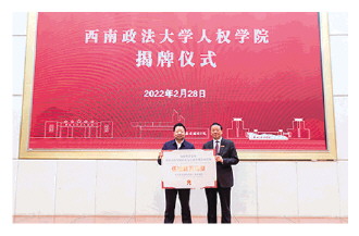2月28日,重慶市委常委、宣傳部部長張鳴為西南政法大學(xué)人權(quán)學(xué)院和《人權(quán)法學(xué)》雜志揭牌。西政人權(quán)學(xué)院由此成為全國高校中首家人權(quán)學(xué)院。重慶市委宣傳部常務(wù)副部長曹清堯,市委宣傳部副部長馬然希,市委教育工委專職副書記覃正杰,光明日報(bào)重慶記者站站長張國圣,重慶新華書店集團(tuán)黨委副書記、重慶陸海國際傳播公益基金會理事長林江以及各市級相關(guān)單位處室負(fù)責(zé)人蒞臨揭牌儀式。揭牌儀式由西南政法大學(xué)黨委書記樊偉主持。黨委副書記、校長付子堂,黨委副書記吳鈺鴻等領(lǐng)導(dǎo)及人權(quán)學(xué)院師生代表共同見證了全國首家人權(quán)學(xué)院的成立。